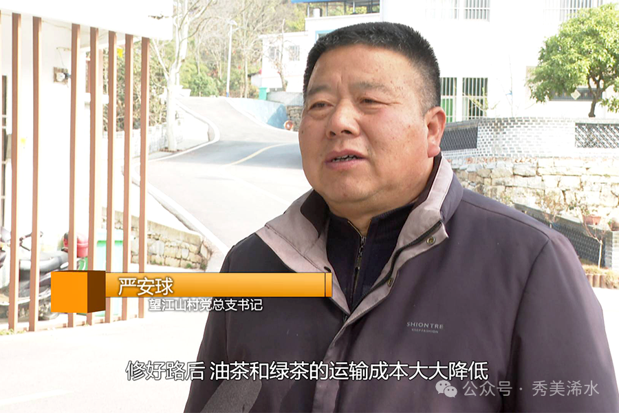 望江山村党总支书记 严安球:我们村近年来在产业发展和乡村旅游方面有了很大的进步,这些变化的关键因素之一就是道路建设。如果没有修好路,就不会有今天的油茶、绿茶产业。修好路后,油茶和绿茶的运输成本大大降低,吸引了更多的企业和投资者进入。