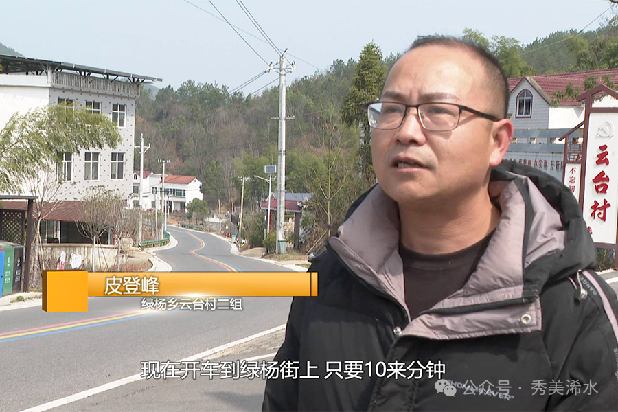 绿杨乡云台村二组 皮登峰:交通更加便利了,环境更加优美了,现在开车到绿杨街上,只要10来分钟。