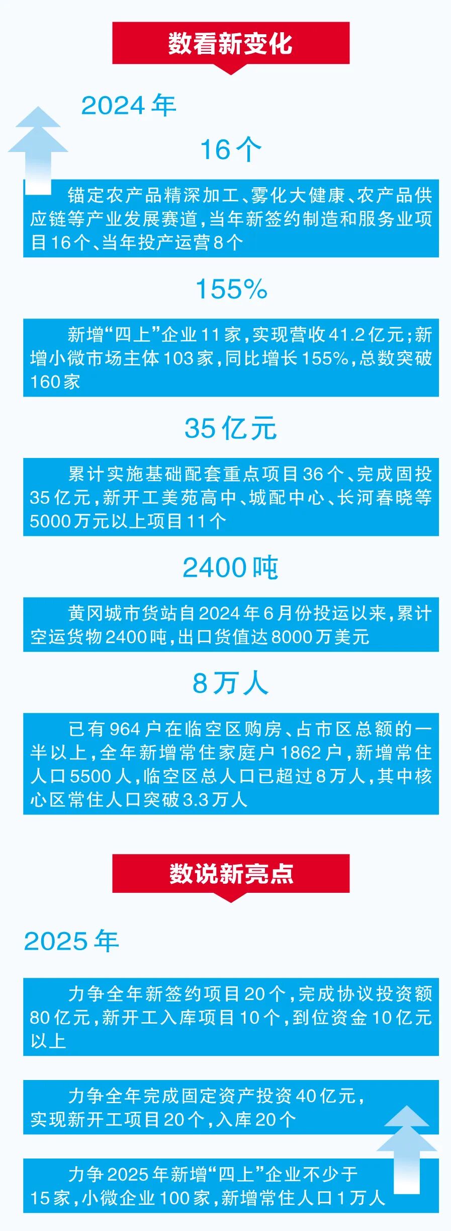 答:2024年,在市委、市政府的坚强领导下,临空经济区坚决落实“依托都市圈、辐射大别山”市域战略规划,坚持对内整合、对外开放的黄冈路径,以临空产业培育、开放平台搭建、城市功能提升、营商环境优化为抓手推进空港城突破起势,借机起飞。