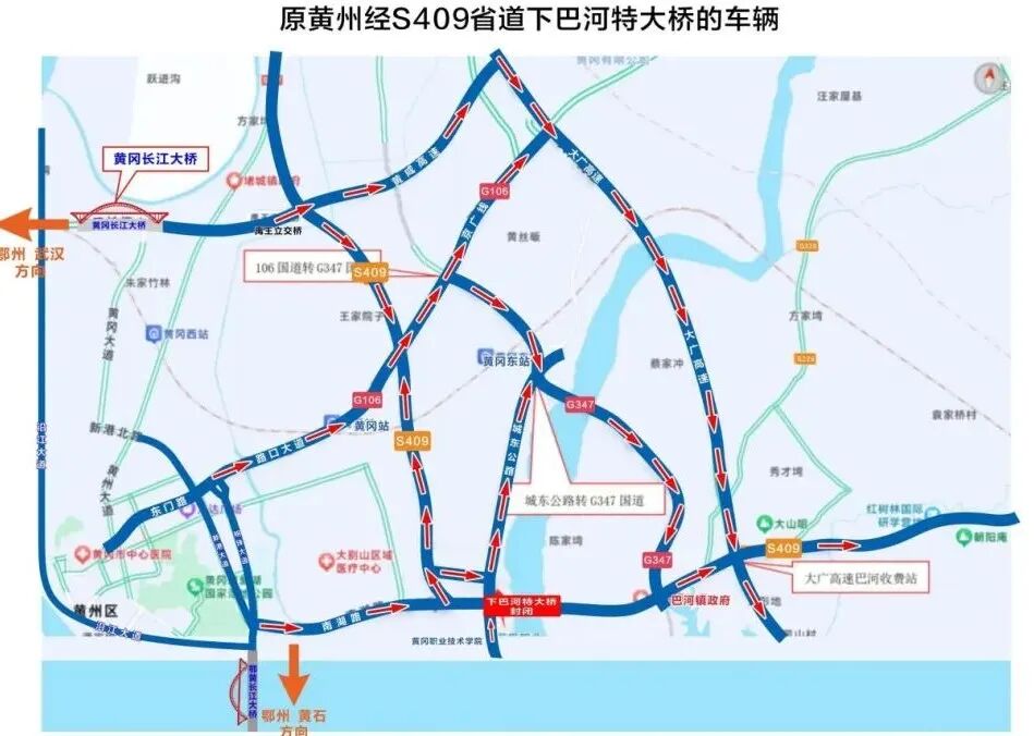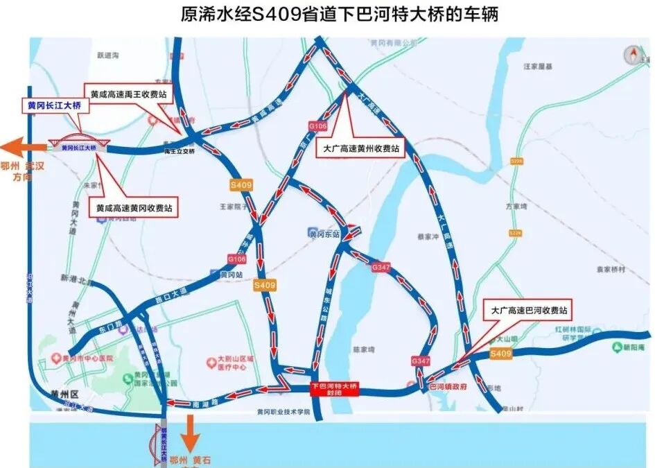 绕行G45大广高速巴河收费站出口至S409(葛洲坝大道)浠水巴河段