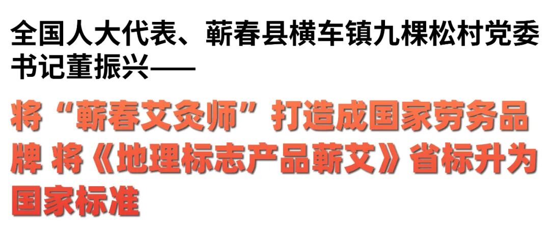“树一个品牌,带一片就业,强一域经济,富一方百姓。‘蕲春艾灸师’获评‘全国我最关注的劳务品牌’第一名,连续两年入选全国地方就业创新事件。目前,已培训蕲春艾灸师8.3万人,蕲春艾灸师平均月收入达到6500元以上,年创造劳务经济收入近百亿元。”来自医圣李时珍故里蕲春的董振兴,围绕蕲艾全产业链发展和蕲艾品牌建设提了3件建议议案。