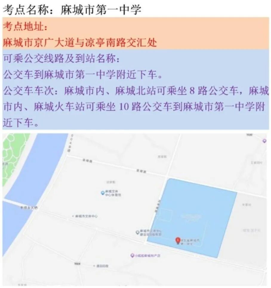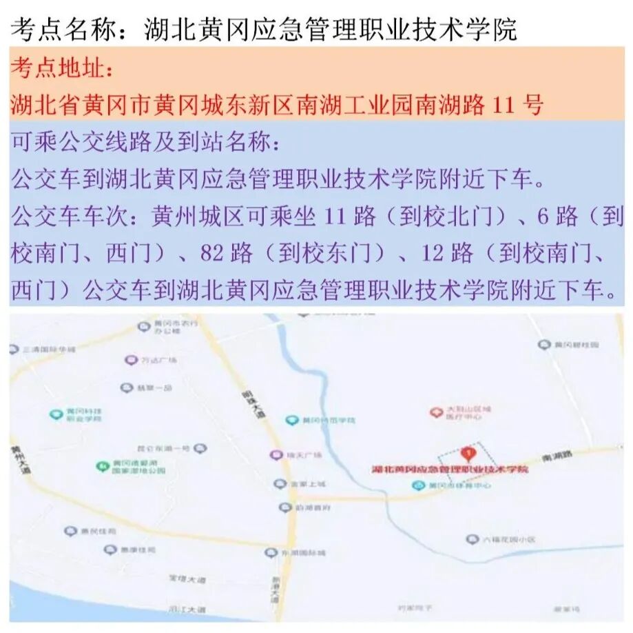 2.黄州城区黄冈职业技术学院、湖北黄冈应急管理职业技术学院2个考点离城区较远,请考生提前出发,避开交通拥堵时段,预留充足的时间以免耽误考试。考试当天,在虹桥公交站(湖北省黄冈市黄州区新港三路警苑花园西南侧约170米)临时增开到黄冈职业技术学院、湖北黄冈应急管理职业技术学院专线直达车,考生可前往乘坐。在黄州城区参考的考生如遇交通困难,可拨打交通服务热线12328咨询求助。麻城城区在麻城市人民法院门口和冠瑞医院门口、马勒三环气门驱动(湖北)有限公司门口和北环路加油站,临时增开到麻城市职业技术教育集团、麻城市第一中学、麻城市第五初级中学(麻城市中心实验学校)等专线车,沿途考生可乘坐。在麻城城区参考的考生如遇交通困难,可拨打交通服务热线0713-2912338咨询求助。