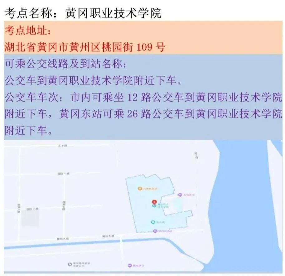 ▲黄冈职业技术学院东门(桃园街)(考生可由此进入)