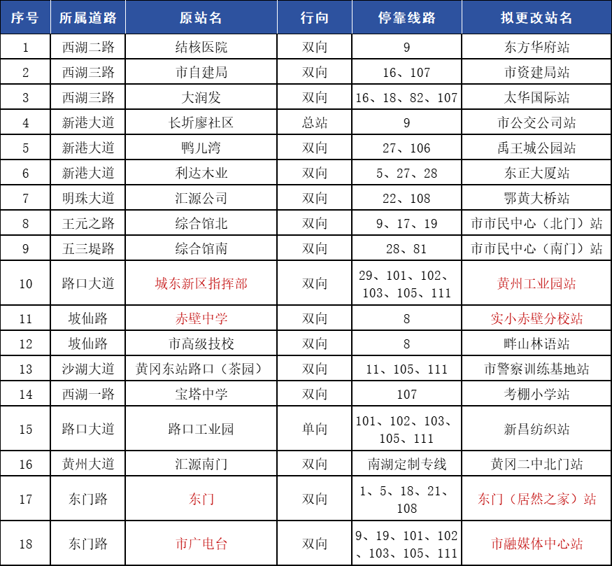 为规范公交站点命名,提升市民公交出行便利性,通过多渠道广泛征集意见,结合2025年度公交站点更名计划,经研究,黄冈市道路运输和物流事业发展中心决定对公共汽车“结核医院站”等36个公交站点名称进行更改(具体名单详见图一)。现将相关事项通告如下: