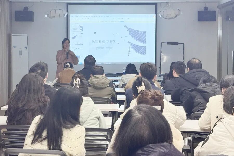 “一部手机也可以剪辑电影大片。”短视频拍摄剪辑的教室座无虚席,老师金梦蕊正在讲解如何为视频添加酷炫转场与特殊音效。台下学员一边看着大屏幕上的演示步骤,一边用自己的手机实践操作。