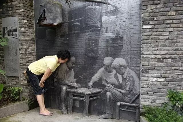 历史的过往穿越时间的藩篱,跨越空间的阻碍,来到麻城文化小镇。麻城文化小镇二维半场景将历史旧照嵌入现代文化砖墙之中,栩栩如生地还原过往生活场景,让历史的过往穿越在小镇的街头巷尾,恍若隔世。