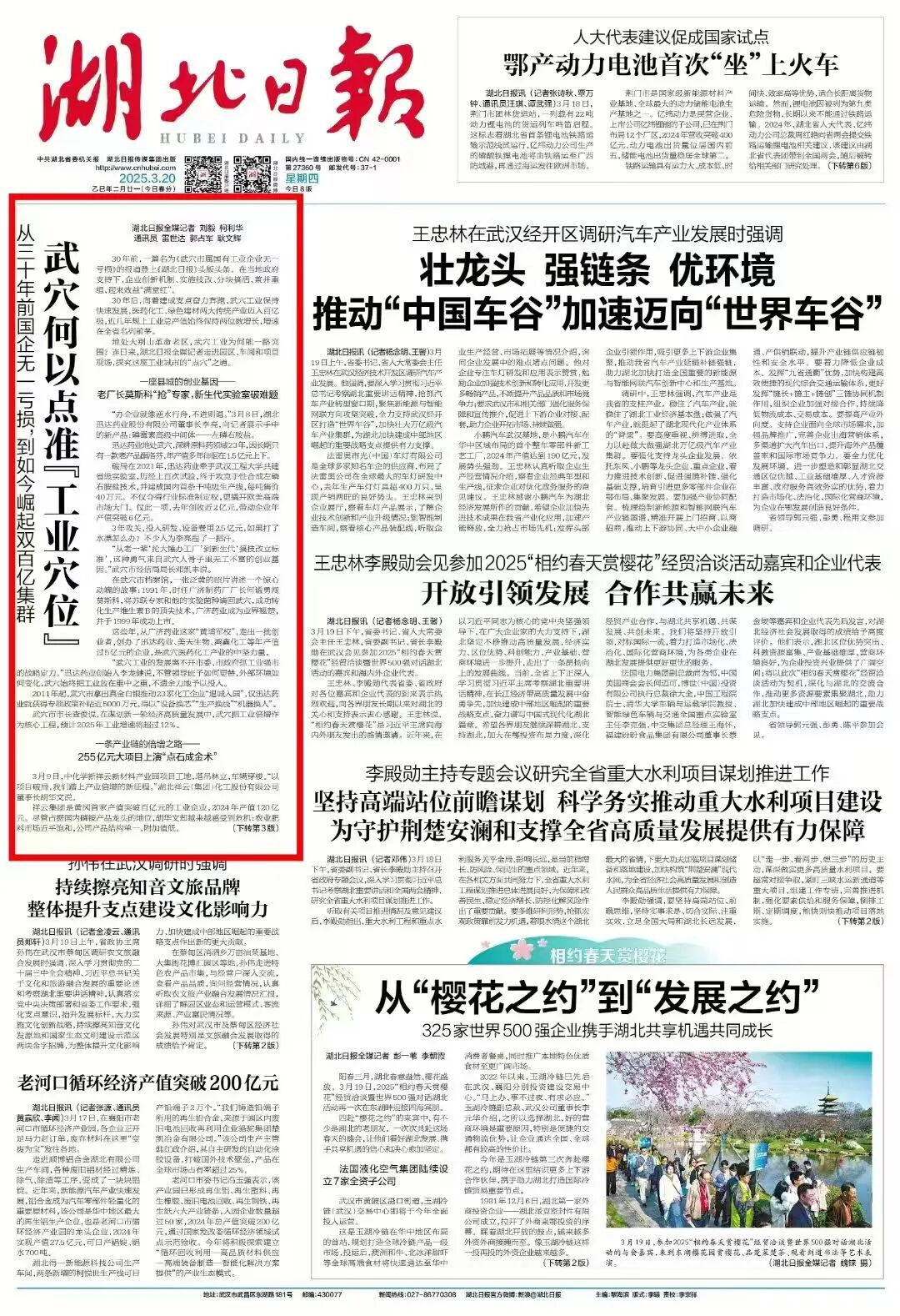 《湖北日报》3月20日头版