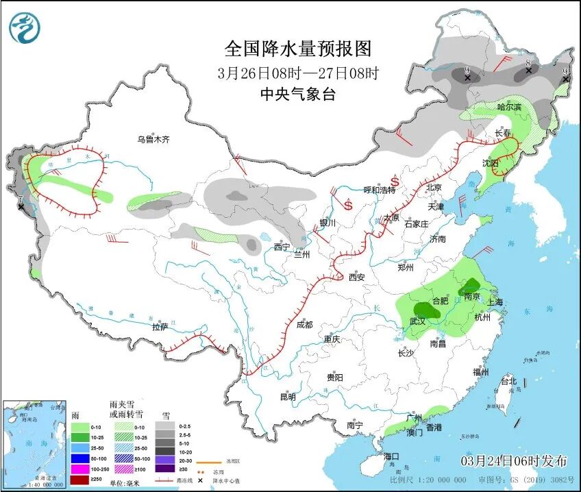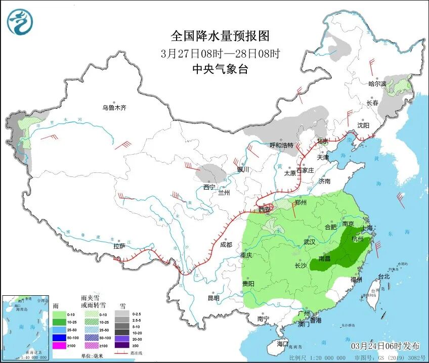 目前,我国中东部大部分地区仍处于气温回升阶段,其中京津冀及江南、华南一带最高气温一度达到28~30℃。但是新一股冷空气已经蓄势待发,本周将给全国多地带来大风降温、沙尘或雨雪天气。预计3月25日至29日,寒潮天气将自西向东影响我国除青藏高原外的大部地区。其中,25日至26日主要影响西北地区、华北西部;27日至29日将影响中东部大部地区。