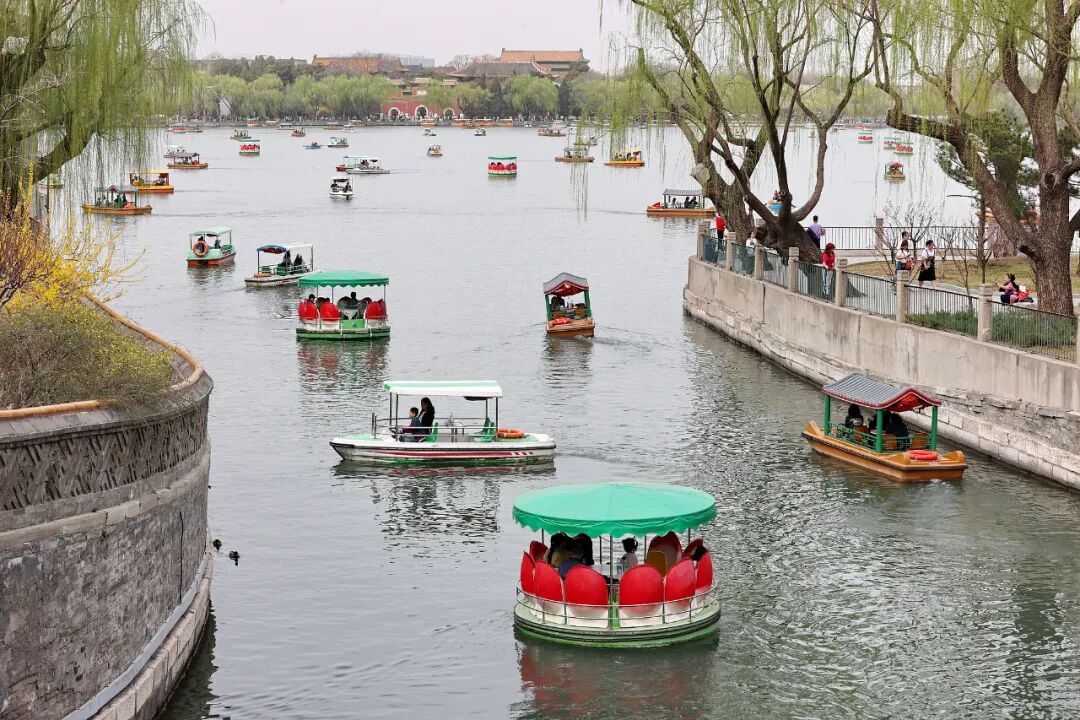 △23日,北京气温回暖,市民游客春游北海公园。
