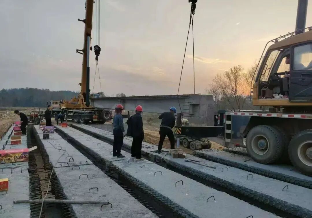 王徐家大桥由红安交投鄂东路桥公司承建,自2024年10月28日进场开始桩基作业,镇协调专班克服重重困难,深入一线,面对面做好群众工作,竭尽全力为承建单位提供“零干扰、零上访“的施工环境;承建单位克服场地、环境、资金等制约因素,通过倒排工期、精细化组织施工工艺,全力推进项目建设,仅用时不到5个月时间顺利合龙,进入桥面和附属工程施工阶段。同步,王姚线南段改扩建工程SK线上新集至桥店段路基工程进入攻坚阶段,预计今年10月份具备路面沥青铺装施工条件。