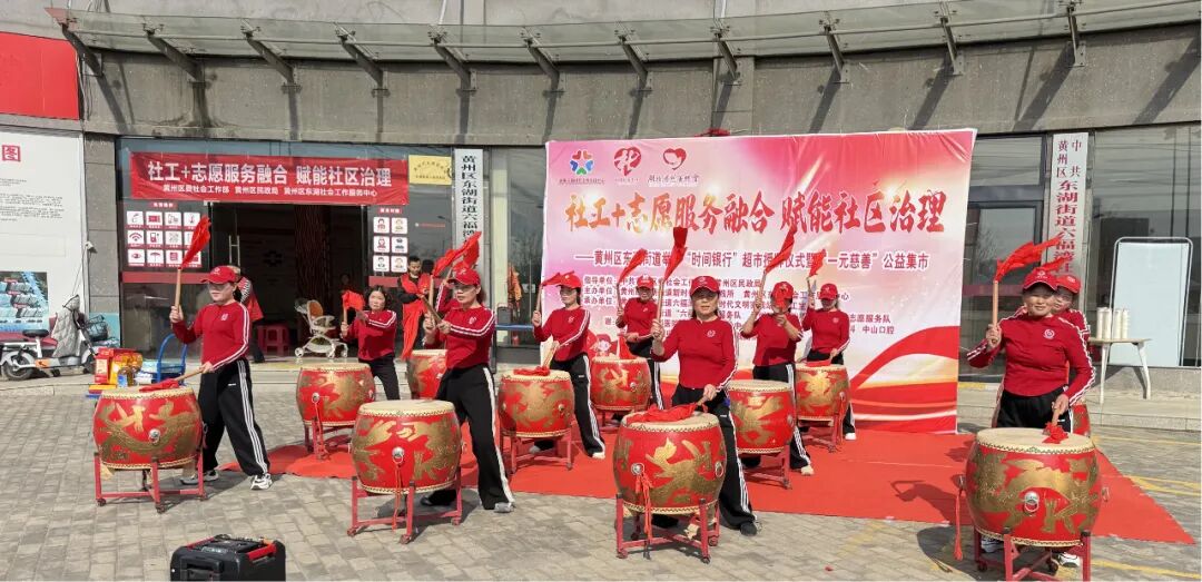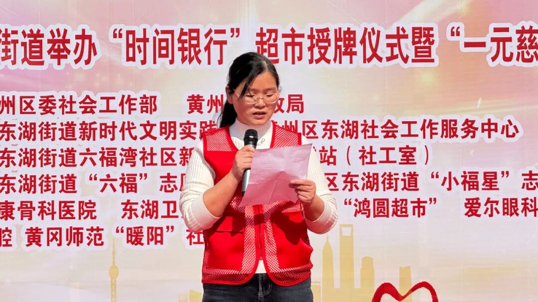 活动在“六福”志愿服务队带来的威风锣鼓声中拉开帷幕。区委社会工作部副部长童珍军为“六福鸿圆”超市授牌,共同见证东湖街道首家企业“时间银行”超市正式启动运营。