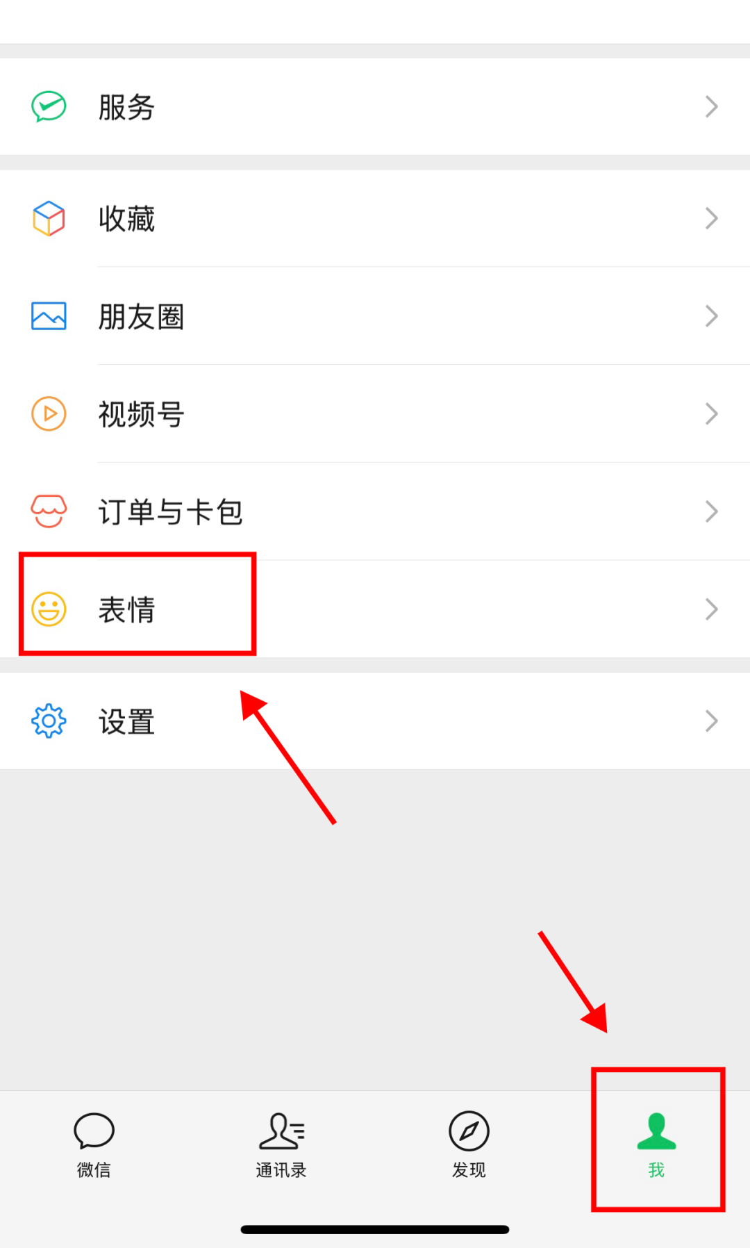 步骤1:在微信界面点击右下角“我”,然后点击“表情”进入表情商店界面;