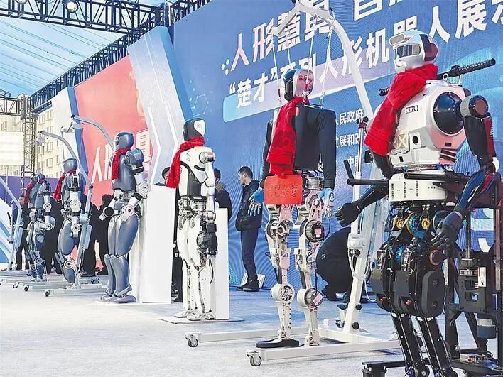 2月5日,湖北造“楚才”人形机器人集体亮相。(湖北日报全媒记者 柯皓 摄)