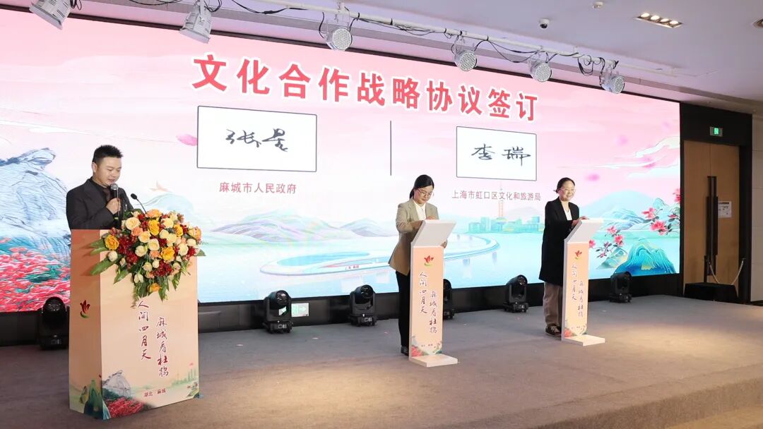 推介会现场,麻城与上海市虹口区签署战略合作协议,双方将在客源互送、品牌共建、人才交流等六大领域展开深度合作。政企嘉宾共同启动了长三角“引客入麻”行动计划,同时发布“乘着高铁游麻城”“花漾麻城”社交话题,邀请全网共创文旅内容,赢取麻城文旅大奖,掀起了线上线下互动的热潮。现场还发布了针对长三角游客的优惠政策,吸引长三角游客“乘着高铁游麻城”,并与多家知名旅行社达成“引客入麻”双向合作。