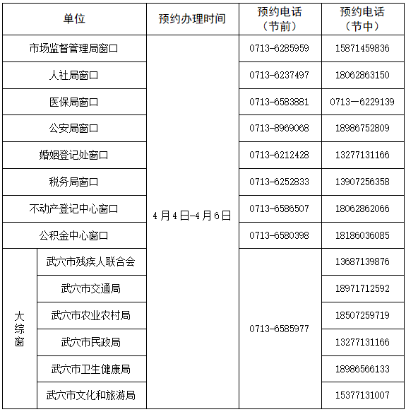 三、注意事项: 窗口单位做好节前、节中电话接听和预约登记,安排人员现场办理。