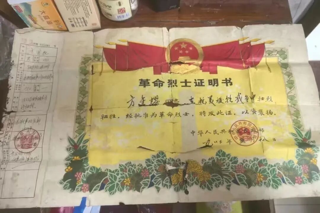 1952年,麻城市白果镇麻溪河村。方金耀告别新婚妻子和刚出生的儿子方汉炳,毅然报名参军,成为中国人民志愿军第23军第73师第218团的一名机枪手。方金耀是家中独子。临行前他对家人说:“我已经有了后人,就算牺牲也是为了国家!”1953年6月,在朝鲜281.2高地战斗中,方金耀英勇牺牲,生命永远定格在21岁。方金耀走后3年,一张烈士证和一个光荣牌被送到了家里。“革命烈士证明书”上写着:方金耀同志在抗美援朝战争中壮烈牺牲,经批准为革命烈士。 “小的时候,奶奶就跟我说要坚强,爸爸是为革命而牺牲的,但是奶奶总是在夜里偷偷地哭泣。”关于父亲的一切,方汉炳只能从上一代人的口中知晓。父亲牺牲后,具体安葬在哪里?不得而知。成年后,方汉炳一直没有忘记寻找父亲,但始终没有结果。每年清明节,方汉炳都只能向着北方,给父亲磕头上香。寻找,等待!寻找,等待……向英烈致敬,接英雄回家!自2014年起,我国已连续11年派出专机接回在韩志愿军烈士遗骸,截至目前,我国共迎回981位在韩中国人民志愿军烈士遗骸,其中就包含方金耀烈士的忠骨,他被安葬在沈阳抗美援朝烈士陵园。