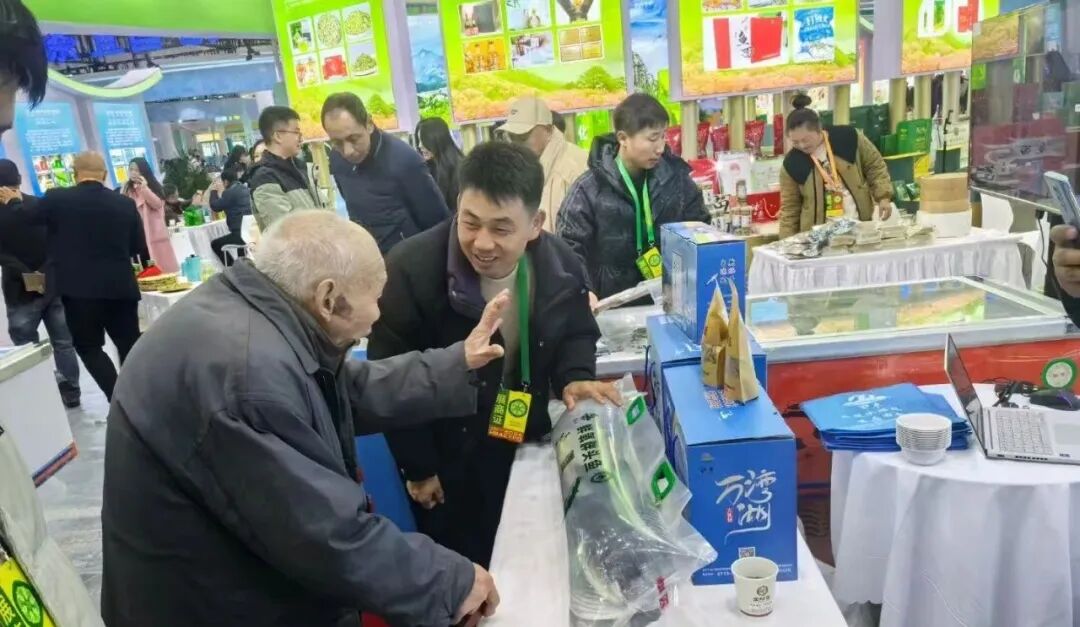 时间回溯到2024年4月12日,广东东莞举办第八届中国国际食品及配料博览会和第二届中国国际预制菜产业博览会,在“鄂東”白莲河青背胖头鱼展区,来自海威达水产食品商行的市场部经理一行驻足观看,对人放天养的白莲青背胖头鱼给予称赞。