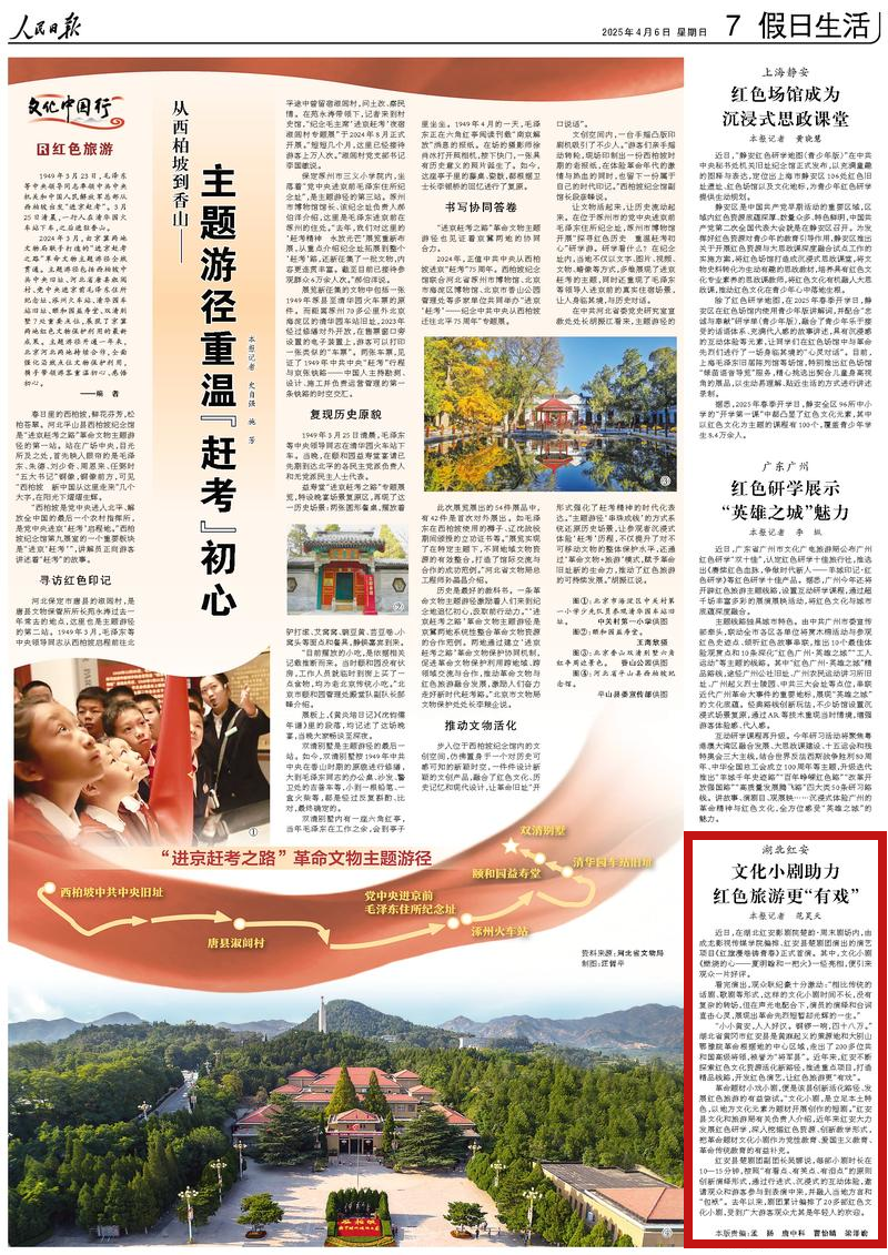 红安县楚剧团副团长吴娜说,每部小剧时长在10—15分钟,按照“有看点、有笑点、有泪点”的原则创新演绎形式,通过行进式、沉浸式的互动体验,邀请观众和游客参与到表演中来,并融入当地方言和“包袱”。去年以来,剧团累计编排了20多部红色文化小剧,受到广大游客观众尤其是年轻人的欢迎。