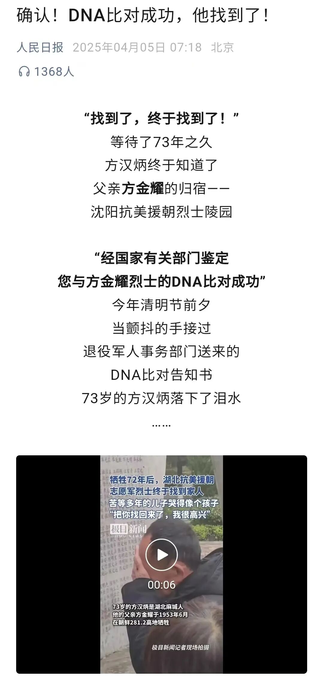 湖北抗美援朝志愿军烈士终于找到家人73岁的方汉炳是湖北麻城人他的父亲方金耀于1953年6月在朝鲜281.2高地牺牲