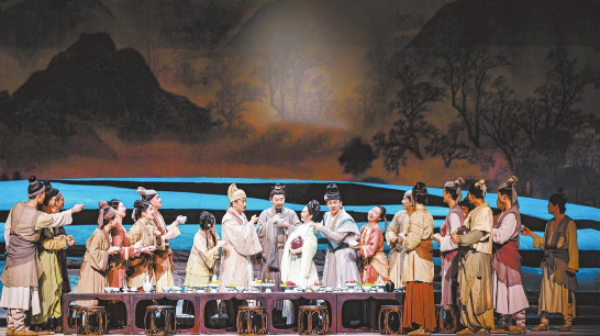 “在进入到歌舞表演和心理时空的构建当中,我们希望最大限度突出其丰满的内心世界,用强表现力的方式,艺术性去表达苏东坡在事件中的心理空间。主创团队在多位文史专家的帮助下深入研读史料,从宋代绘画中提炼了服饰色调,以虚拟交织的舞美设计,再现宋韵诗意,实现宋代美学的当代转化。”霍樱说。
