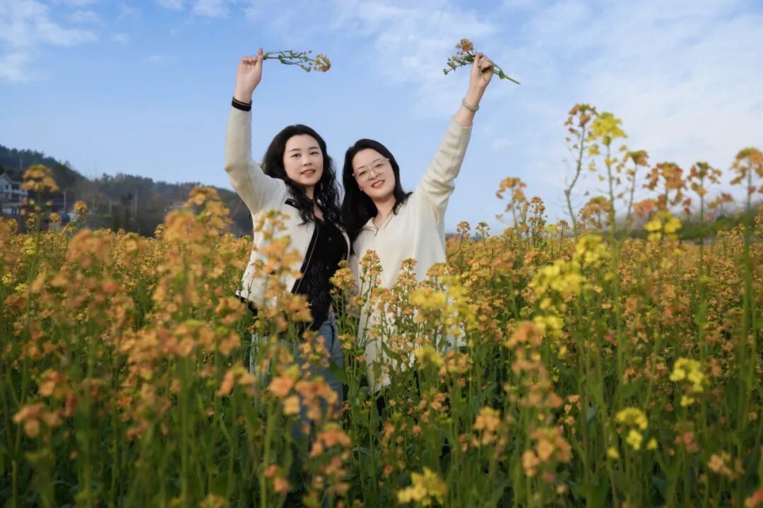 走进油菜种植基地,七彩油菜花在阳光下绚丽夺目,微风吹过,四溢的花香沁人心脾。游客穿梭在花海中,或拍照留念,或驻足观赏,尽情享受着春日的美好时光。