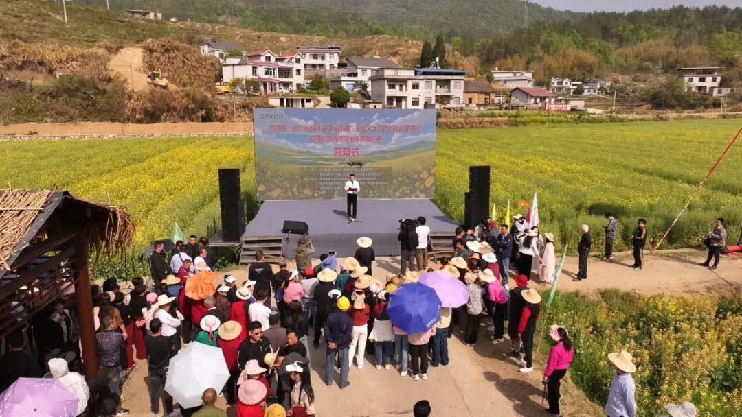 4月8日,“楚天绿叶杯”罗田县“多彩旅游路 百里油菜香”主题文艺创作优秀作品分享暨油菜花海乡村音乐会在大河岸镇许家畈村举行。县领导丰峰出席。