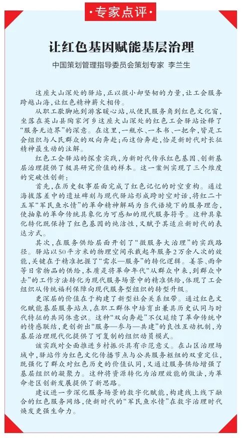 这座年服务2万余人次的深山驿站,用工会服务的创新实践,为“如何让红色基因活在当下”写下生动注脚。