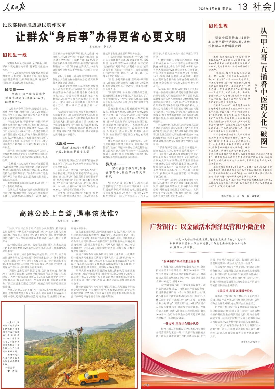 4月9日,《人民日报》13版报道国网湖北电力罗田县供电公司为平湖乡河西村新建380伏低压线路,给打井取水供电,助力解决该村因持续干旱导致的生产生活用水困难问题。