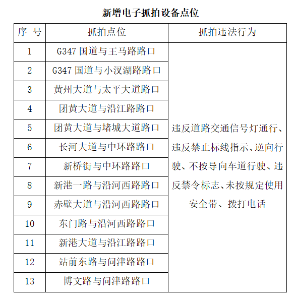 注意!黄冈城区新增13处电子抓拍点