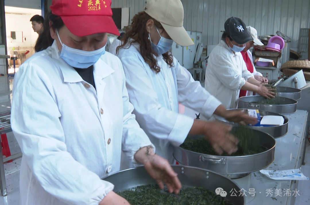 山间茶农“采茶忙”,山边茶厂“茶芳香”。在延续传统制茶工艺的基础上,董河茶叶专业合作社引进了茶叶智能化生产线,杀青、摊晾、揉捻、整形、提香烘干……茶叶加工车间内,工人们忙着抢制新茶。