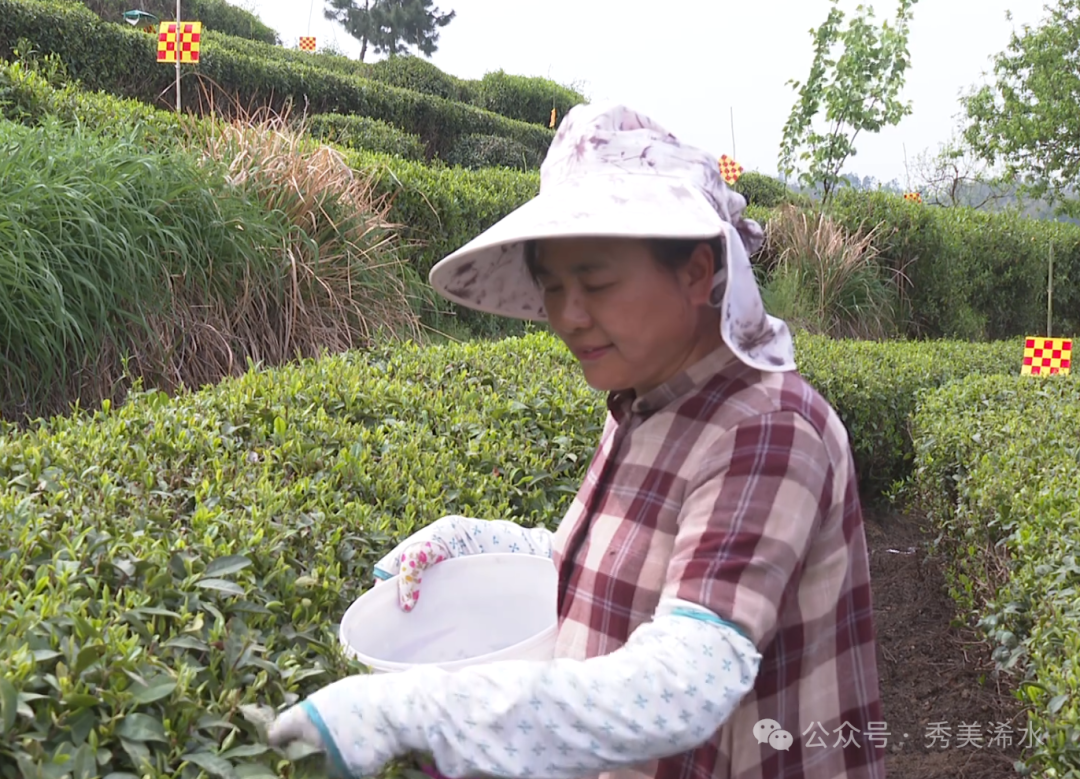 不远处正在忙着采茶的同村村民王桥,她管理了村里将近1亩茶园,有着四、五年的采茶经验,每天晨雾未散时,她便已穿梭在茶垄间,双手翻飞采摘鲜嫩芽头。