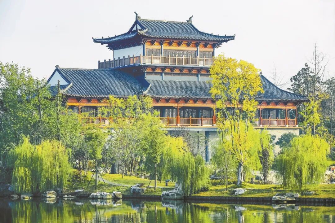 “江柳摇村”的出处是苏东坡的一首诗:“十日春寒不出门,不知江柳已摇村。”十天没出门,出去一看,江边的柳枝已满村摇曳,春来了。景区原址本是一处村庄,“江柳摇村”延续了“村”的余韵和老百姓对“村”的记忆。