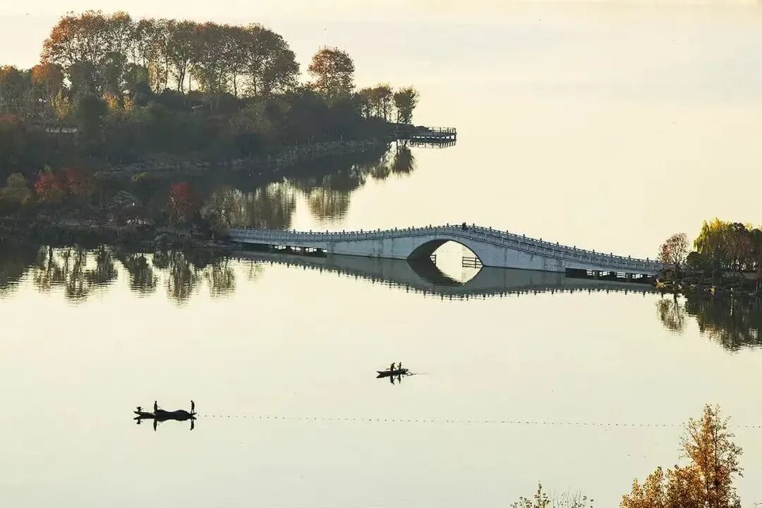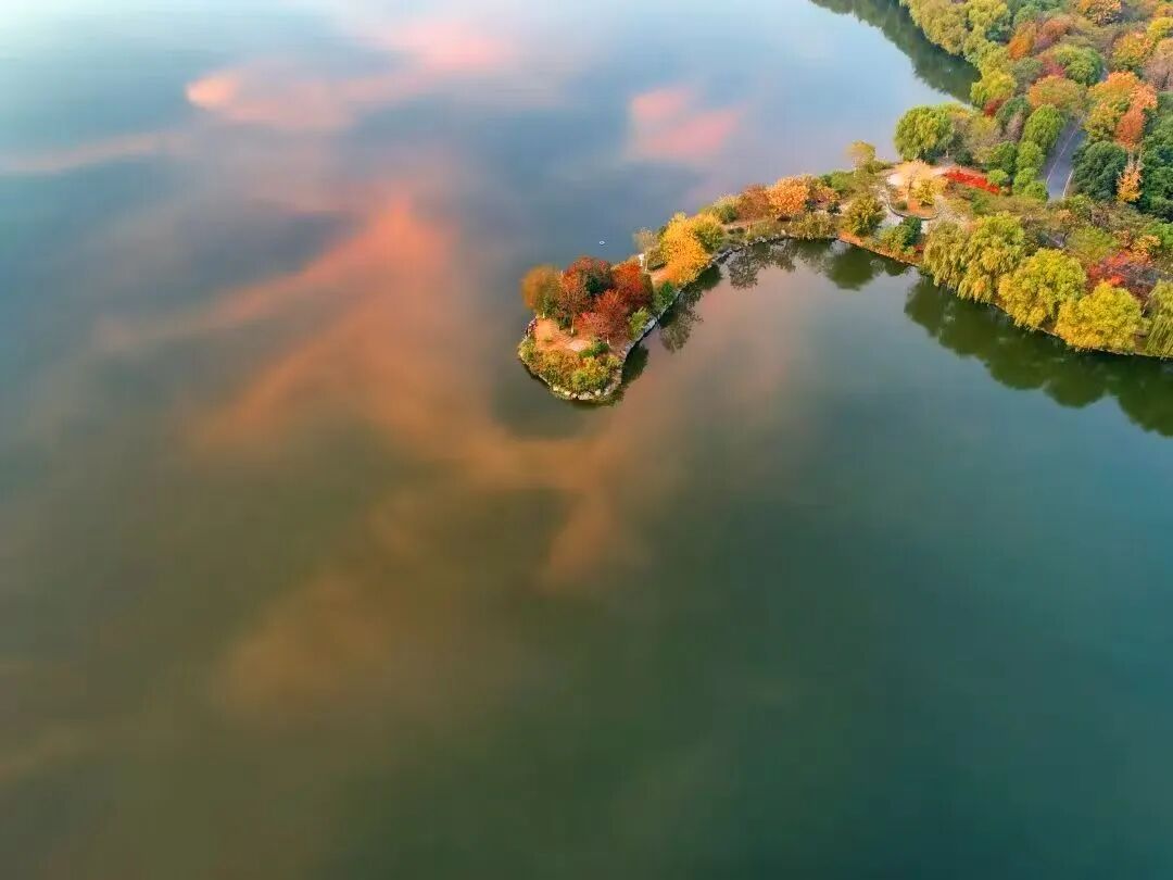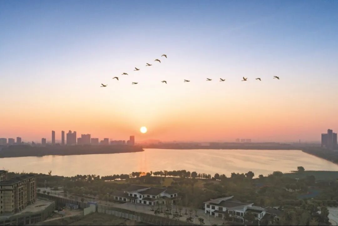 这个景区在黄州大道与翠堤路交叉一带,视野通透,湖面开阔,波平如镜。忽然,天空中大雁归来,掠过湖面上空。“平湖归雁”就定格在这个场景。