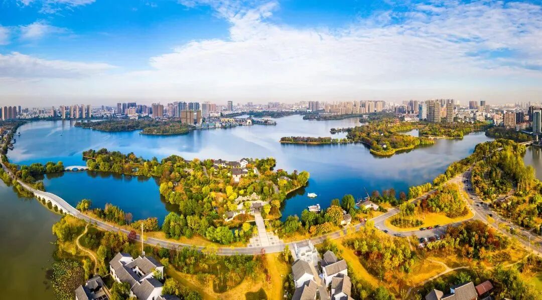 这里的老地名叫大洲岛。这个景区的主体植物是竹,集中连片地种植了几十种竹,有众多的以竹命名的亭台楼阁,还有清雅幽静的紫竹馆,通过各种方式、各种载体展现竹的风骨、竹的气节。