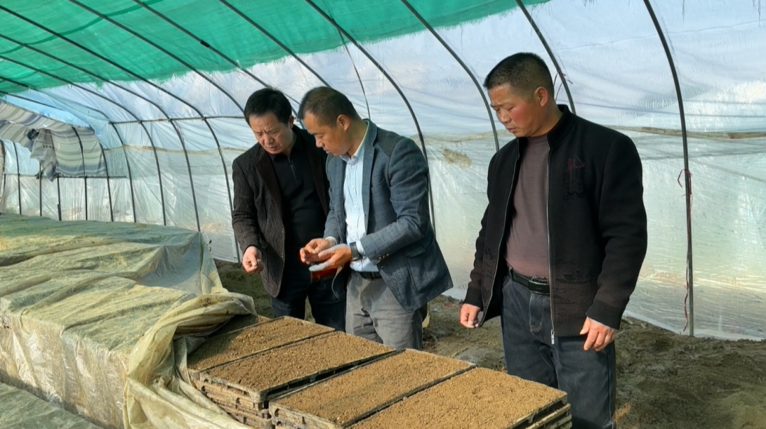 走进原种场户户丰家庭农场的育秧基地,只见一排排秧盘整齐排列,嫩绿色的秧苗破土而出,在大棚内舒展身姿。工人正为大棚揭膜调节温度,确保秧苗在舒适的环境中生长。县农业农村局的技术人员穿梭其间,俯身查看暗化育秧秧苗的根系发育情况,不时与农户交流技术要点,为育秧工作保驾护航。