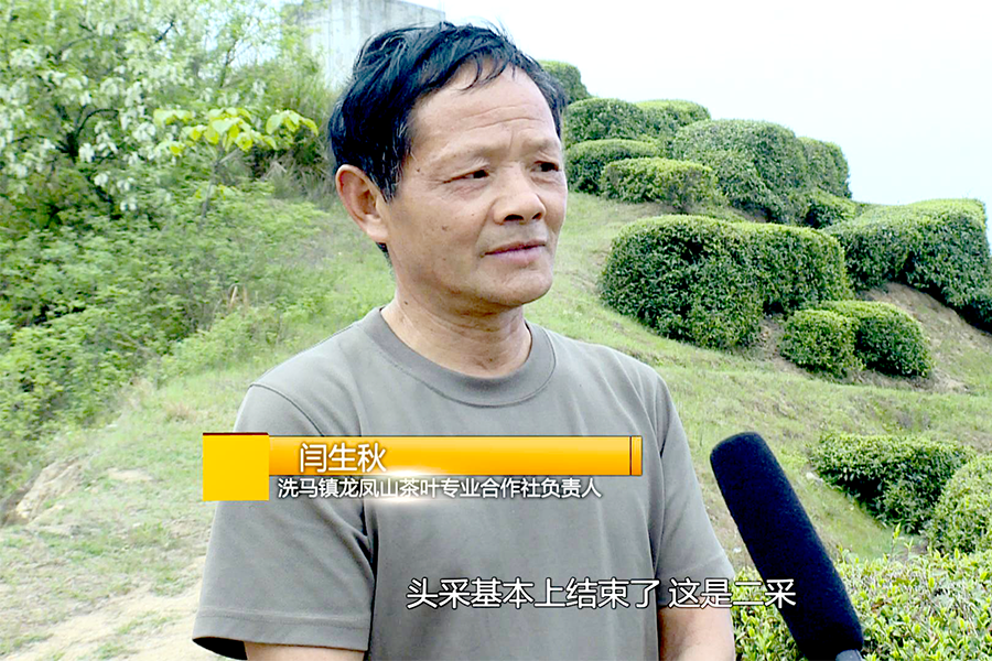 洗马镇龙凤山茶叶专业合作社负责人 闫生秋:这里山势高耸、土壤肥沃,气候适宜。我们茶叶品种主要是龙井43号及老山茶,受气候影响、土壤等因素,我们产出的茶叶色、香独特。