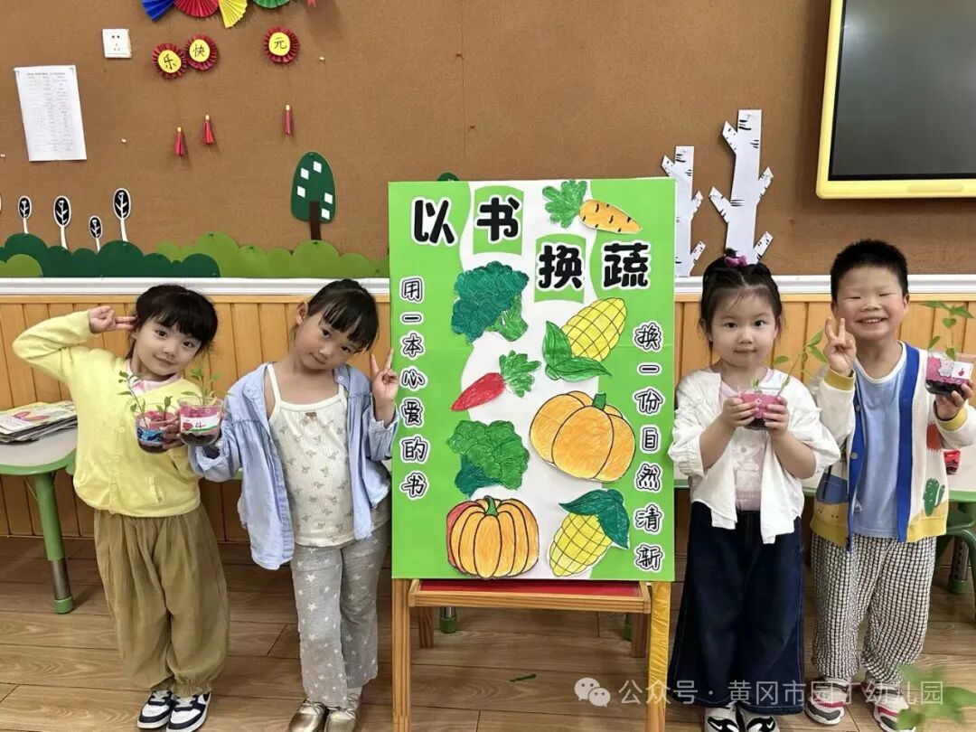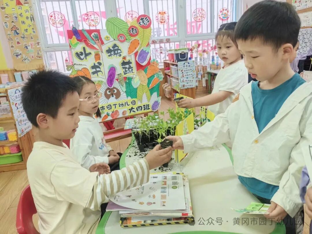 用一本心爱的书,换一份自然地清甜,让旧书不再沉睡,让鲜蔬带你走进向往的生活。为培养幼儿的阅读兴趣、分享精神和对大自然的热爱,黄冈市园丁幼儿园于4月11日开展了一场别开生面的“以书换蔬”活动。孩子们用闲置的绘本换取青翠欲滴的菜苗,在趣味互动中感受“知识传递”与“自然馈赠”的双重意义。