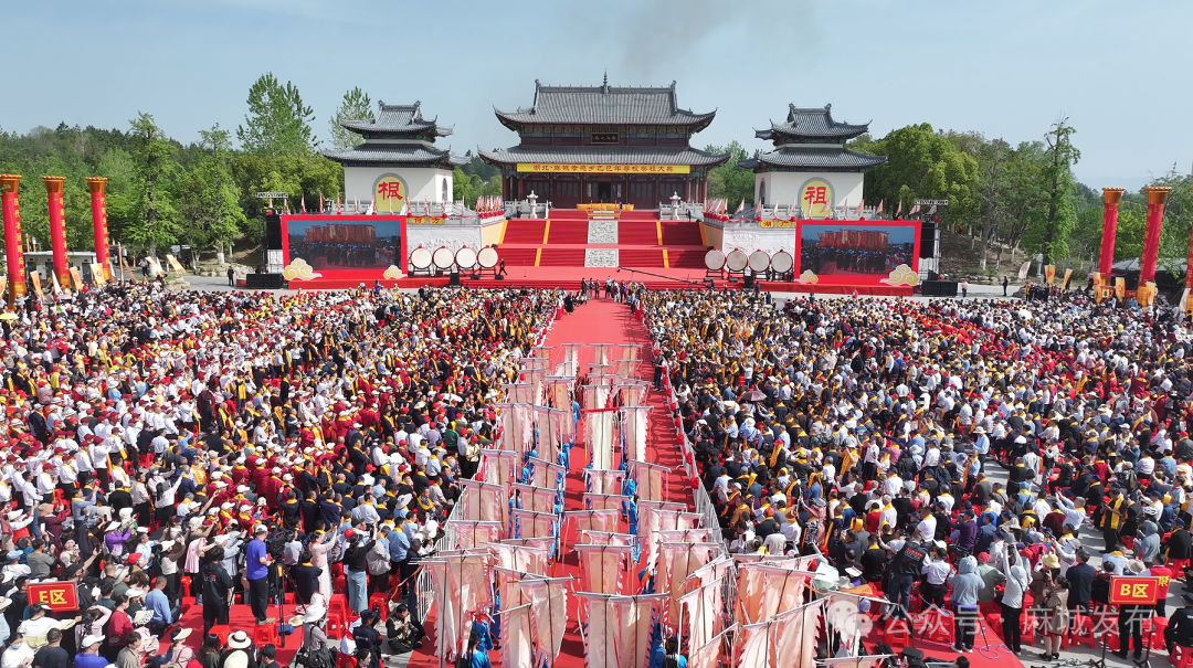 大典在激昂的鼓声中震撼开场,那富有节奏的鼓点,仿佛是历史的回响,瞬间将人们拉回到那段波澜壮阔的移民岁月。大典开始,鸣炮启门、奉祖入场,敬献花篮、五谷、肴馔、奠酒、百果、族谱等传统祭祀环节庄严肃穆,参礼者们通过这些仪式,向祖先呈上最诚挚的敬意与追思。