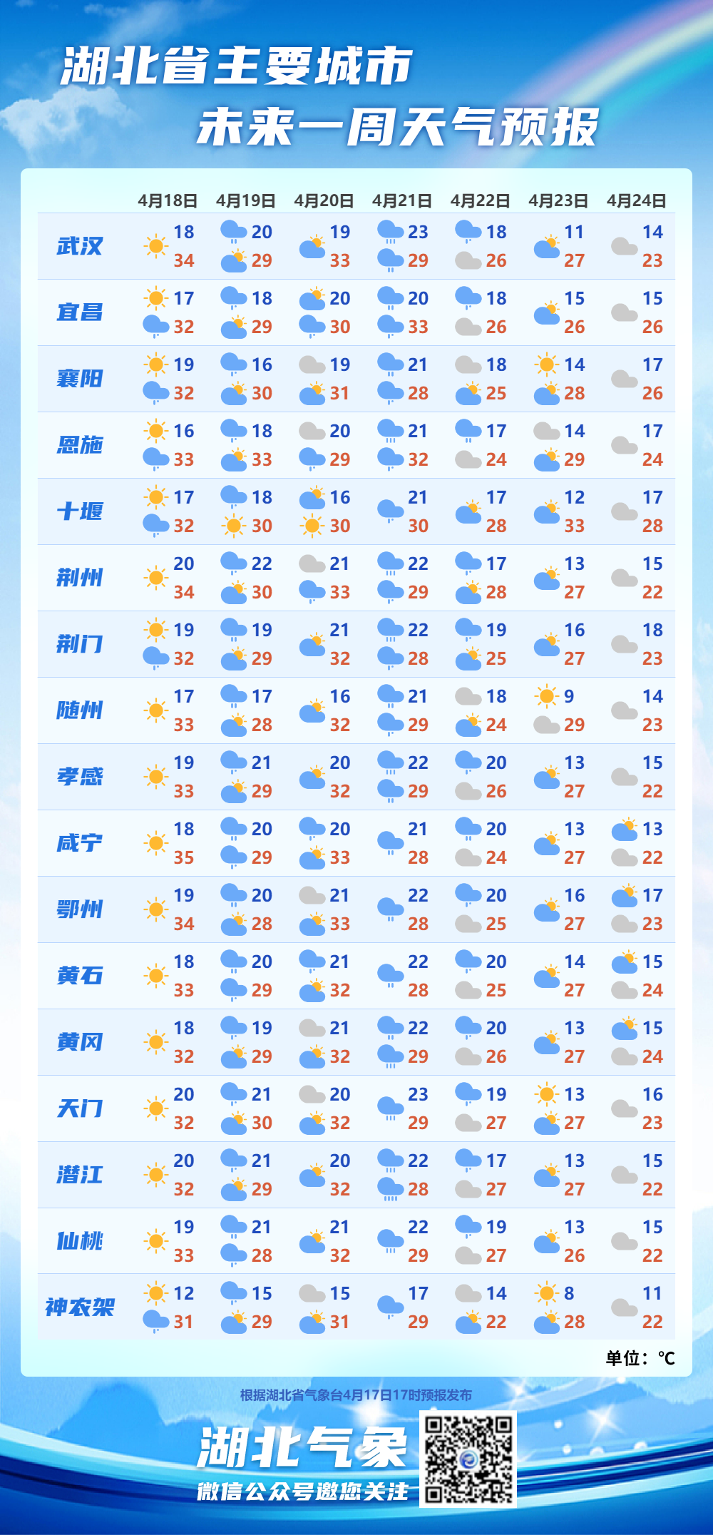 湖北省主要城市未来7天预报