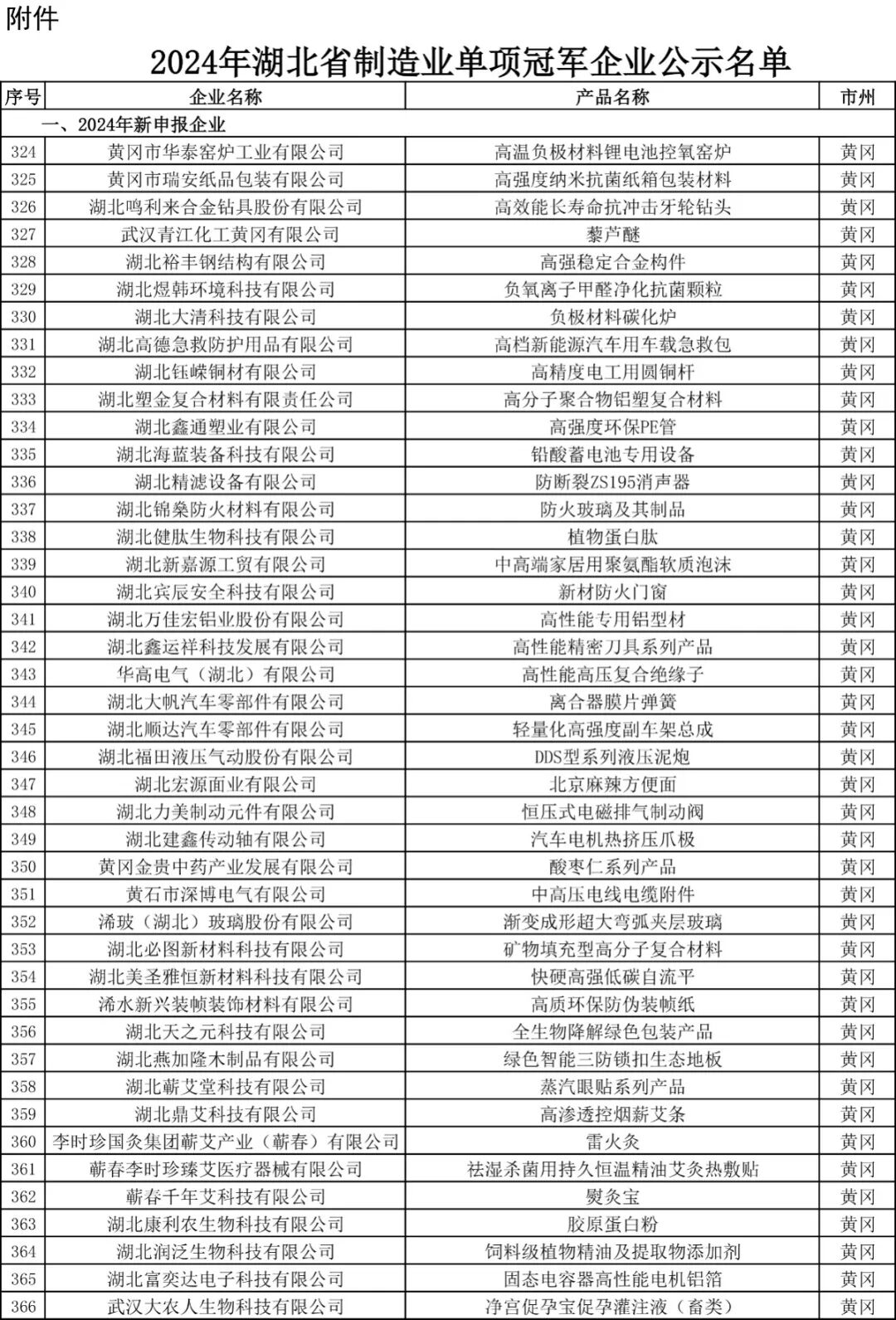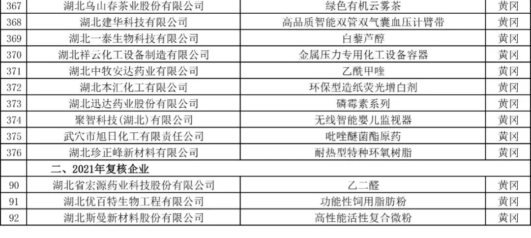 2024年湖北省制造业单项冠军企业名单