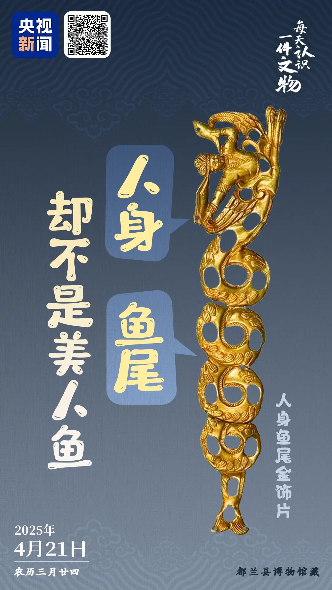人身鱼尾金饰片,发掘于青海省都兰县古墓群。“人身鱼尾”并非“美人鱼”,而是一位身着吐蕃翻领袍的男性,带有双翼,两足为兽足,身后有条长长的回旋鱼身鱼尾,可能为剑鞘装饰。它展现了古人非凡的创造力,还承载东西文化交流的特殊历史意义。