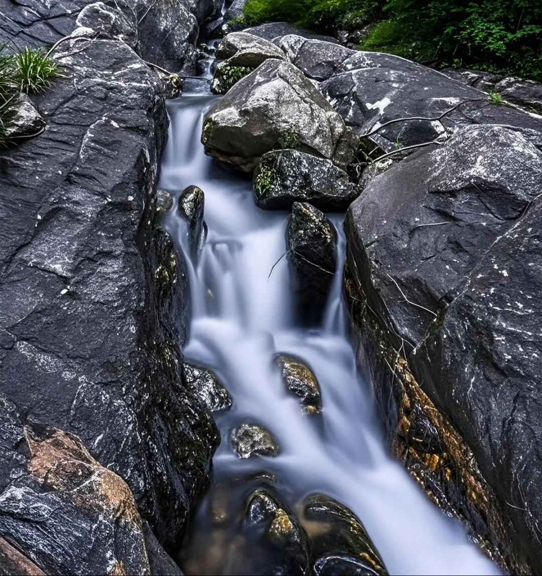 峡谷深藏大崎山腹地,两岸黑褐色峭壁险峻,河水湍急如雷。沿崖栈道蜿蜒,可探秘崖壁古石刻,相传曾有隐士于此修行。