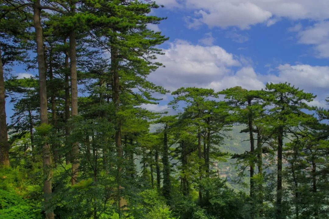 素有鄂东“峨眉”之称的接天山。山高林密,苍翠欲滴。接天叠翠在明代就被誉为八景之一。这里有一片黄山松树龄普遍过百年,树干需两人合抱才能抱住,是华中地区最大的古黄山松群落。