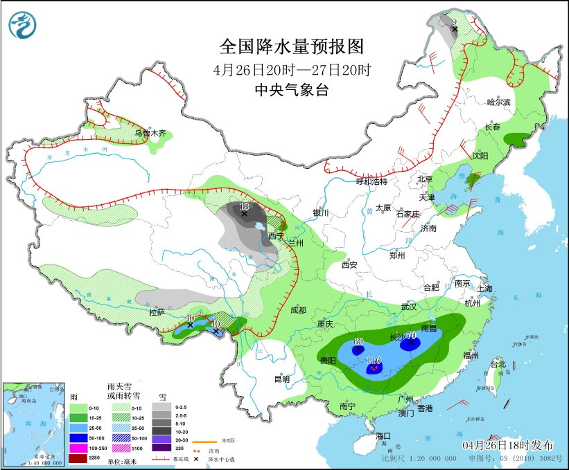 中央气象台预计,26日20时至27日20时,内蒙古东北部、黑龙江西北部、新疆沿天山高海拔地区和南疆盆地、西藏东部和南部、青海东部和北部、川西高原北部等地部分地区有小到中雪或雨夹雪,其中,青海北部和东部、黑龙江西北部等地部分地区有大雪,局地暴雪。