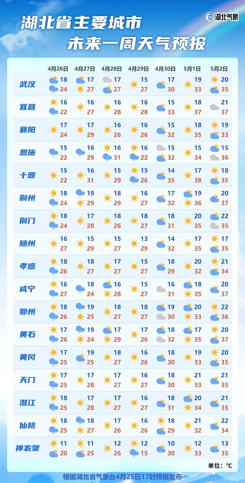 预报来源:湖北省气象台2025年4月26日08时预报