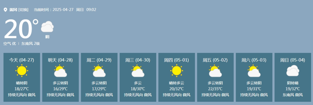 黄冈天气预报