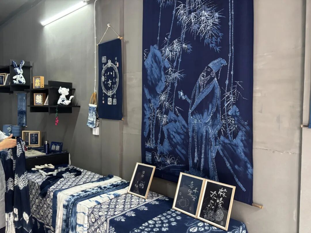 “我们精心准备了琳琅满目的产品,有充满艺术气息的装饰画,有独具风情的服装服饰,有憨态可掬的玩偶,还有各种精致小巧的小摆件。游客朋友们要是喜欢,都可以带回家,让这份非遗之美融入日常生活。”黄州蓝靛印染技艺第五代传人陈小莲热情地介绍道。同时,游客们还可以深度体验蓝靛印染技艺,亲手制作一件属于自己的心仪物件,感受传统文化的独特魅力。