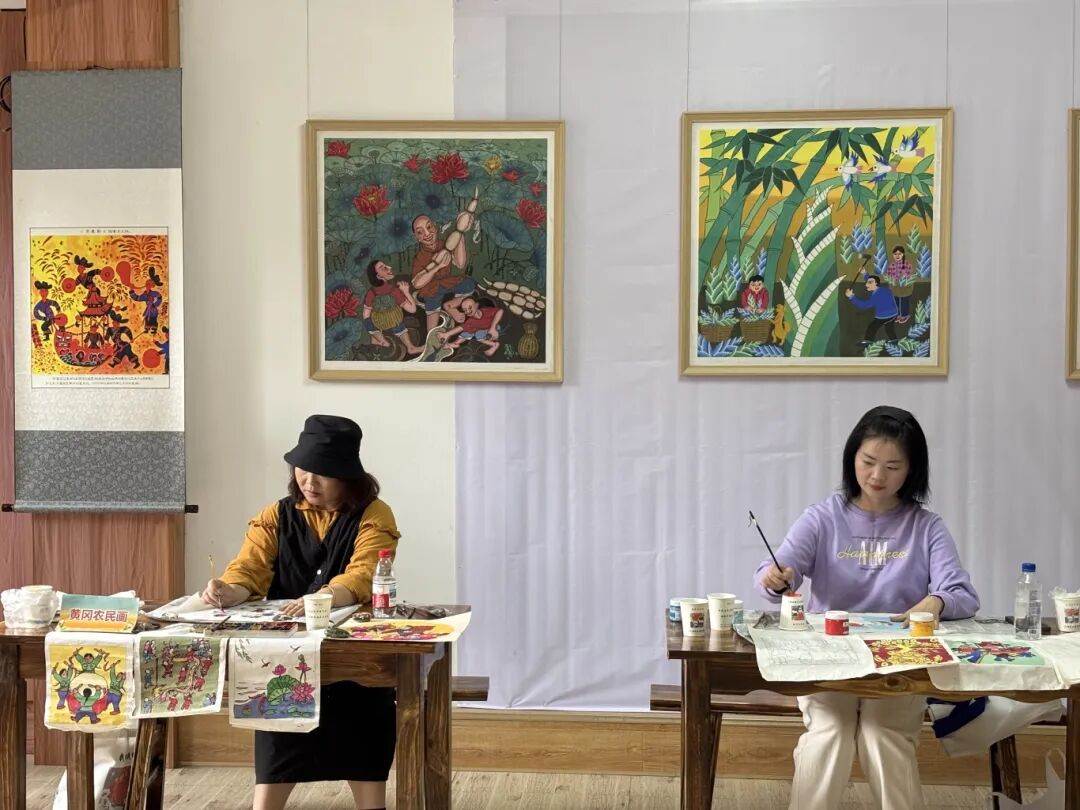 “五一期间,我们在这里展示农民画作,还特别设置了体验区,游客朋友们可以亲自拿起画笔,体验农民画的画法和特点。”黄州农民画第四代传承人舒爱娇介绍,游客们可以通过亲身体验,深入了解黄州本地的特色民俗文化。