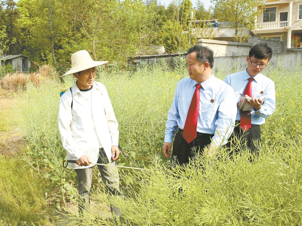 2018年,一场因“羊吃树苗”引发的纠纷闹上法庭,苗圃主与农场主争执不下,矛盾愈演愈烈。程呈友没有急于开庭,而是顶着烈日走进田间,手执卷尺丈量被啃食的树苗,汗水浸透衣衫仍细致勘查。最终,他当场支起巡回法庭,以案释法,让双方握手言和。围观的村民感叹:“原来小纠纷里也有大道理!”这场“田间审判”不仅化解了矛盾,更让法治的种子在乡野生根发芽。