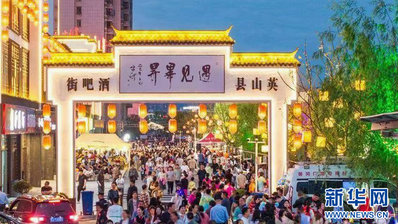 图为湖北英山县城毕昇酒吧街。 新华网发